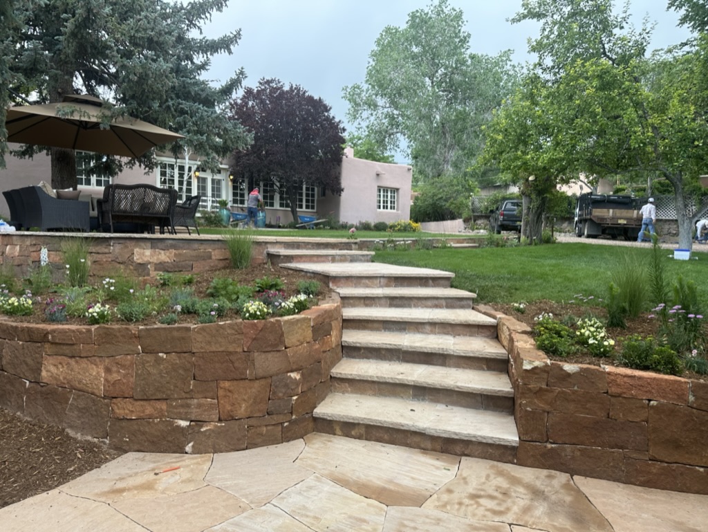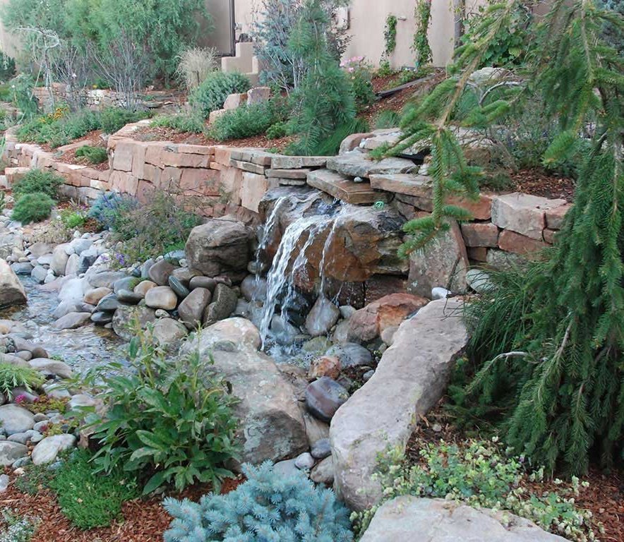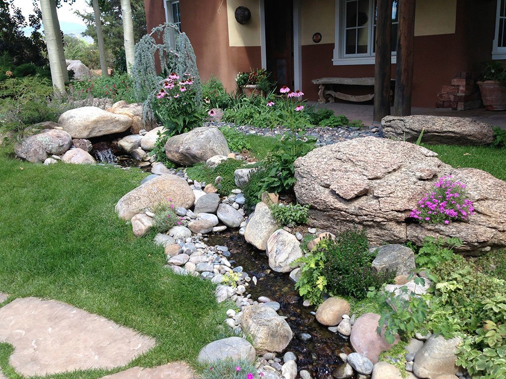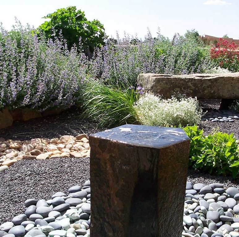 Our landscapers love to work with boulders and can find the perfect character boulder for your space which will become a permanent year round backdrop to your garden. We have several great sources for beautiful rocks and boulders. We use many kinds of gravel for yards, especially during these times of drought, and there is a great variety of color, shape and texture to chose from. Gravel always looks better when broken up by a flagstone path and boulders with river rocks creating the feel of a dry river bed. We have been using rock as a major feature in our Santa Fe landscape designs for since the beginning.