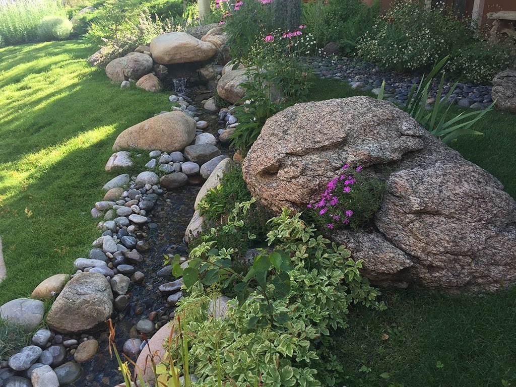 We also use rocks to build up raised perennial beds, retaining walls, and terraced garden beds. Our rock fountains can transform any outdoor space. Call us for ideas and suggestions for your particular site.