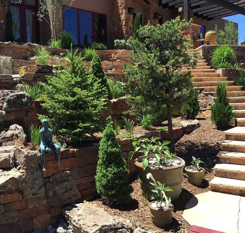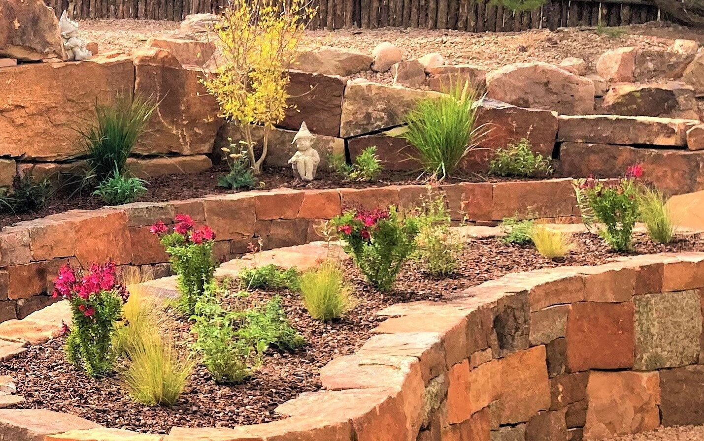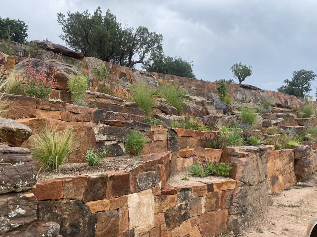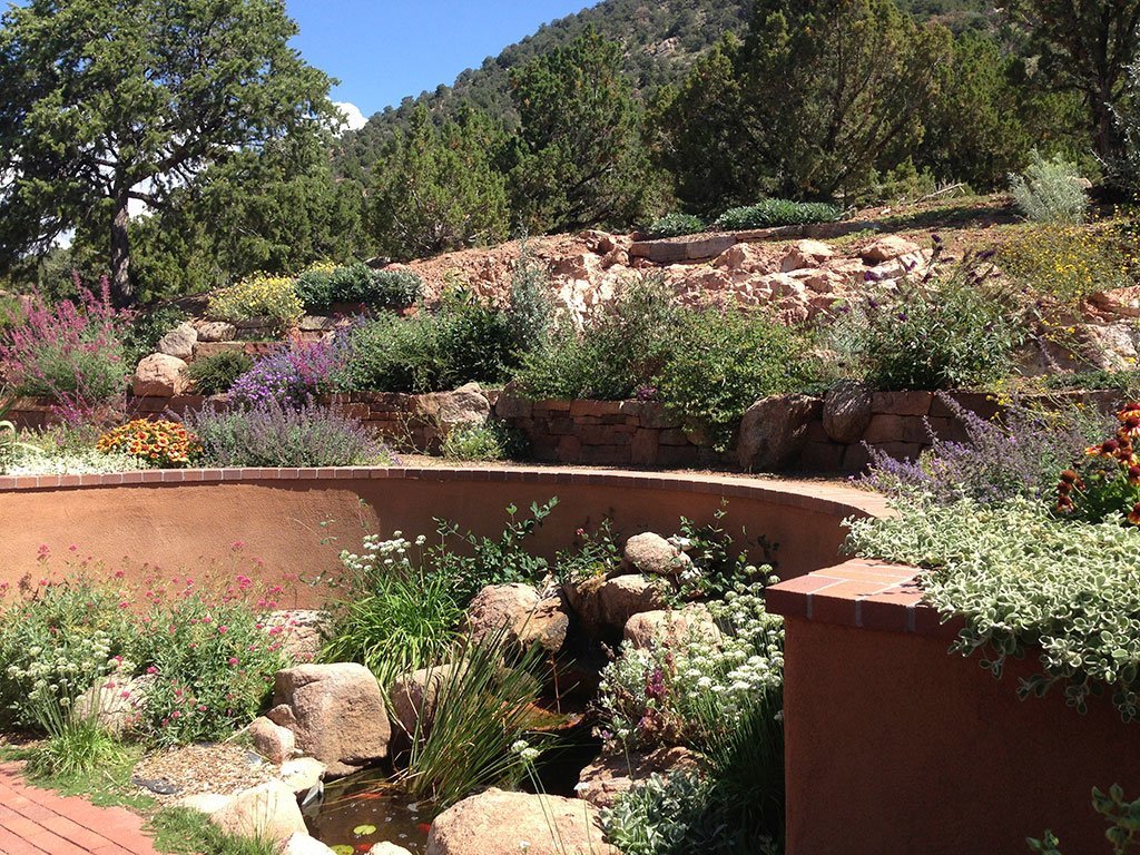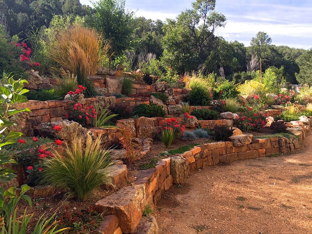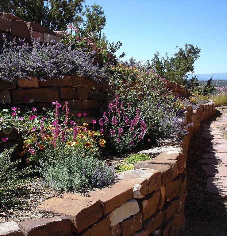 Terrace Gardens in Santa Fe | Rock Walls & Terraces | Masonry is a work of art, Stonework transforms a yard into something with year round interest. While most of the rocks may be covered with hanging vines and blooming shrubs in the summer, there is something refreshing to expose the simplicity of the rockwork after fall clean up, a timeless display of fine craftsmanship.