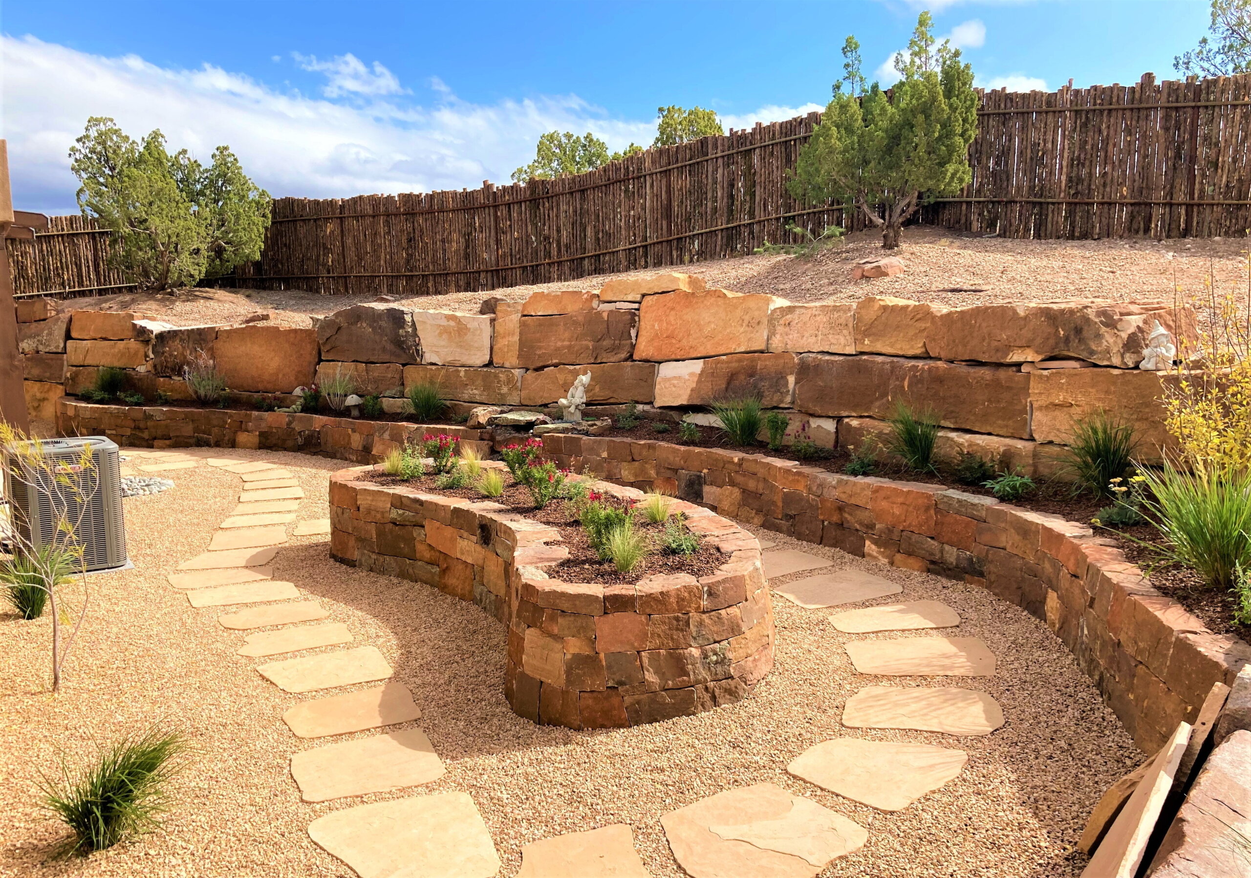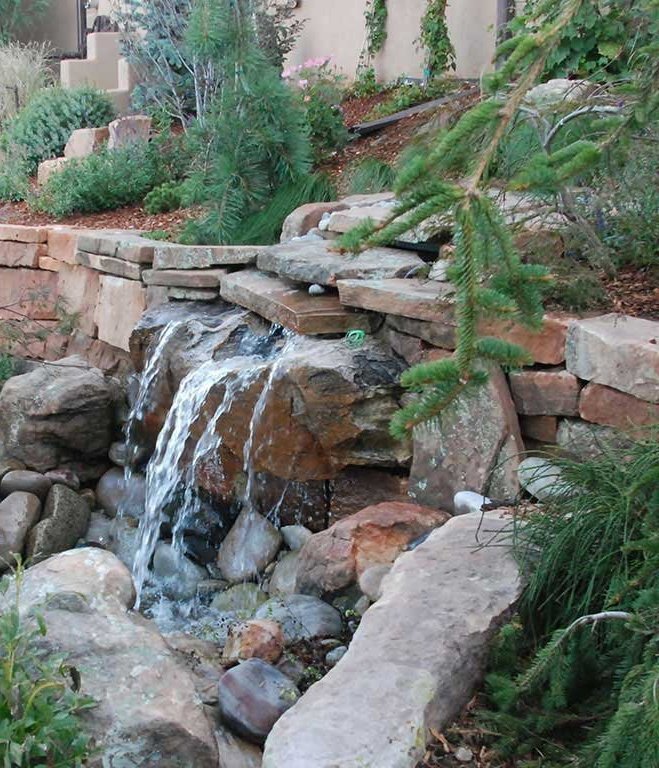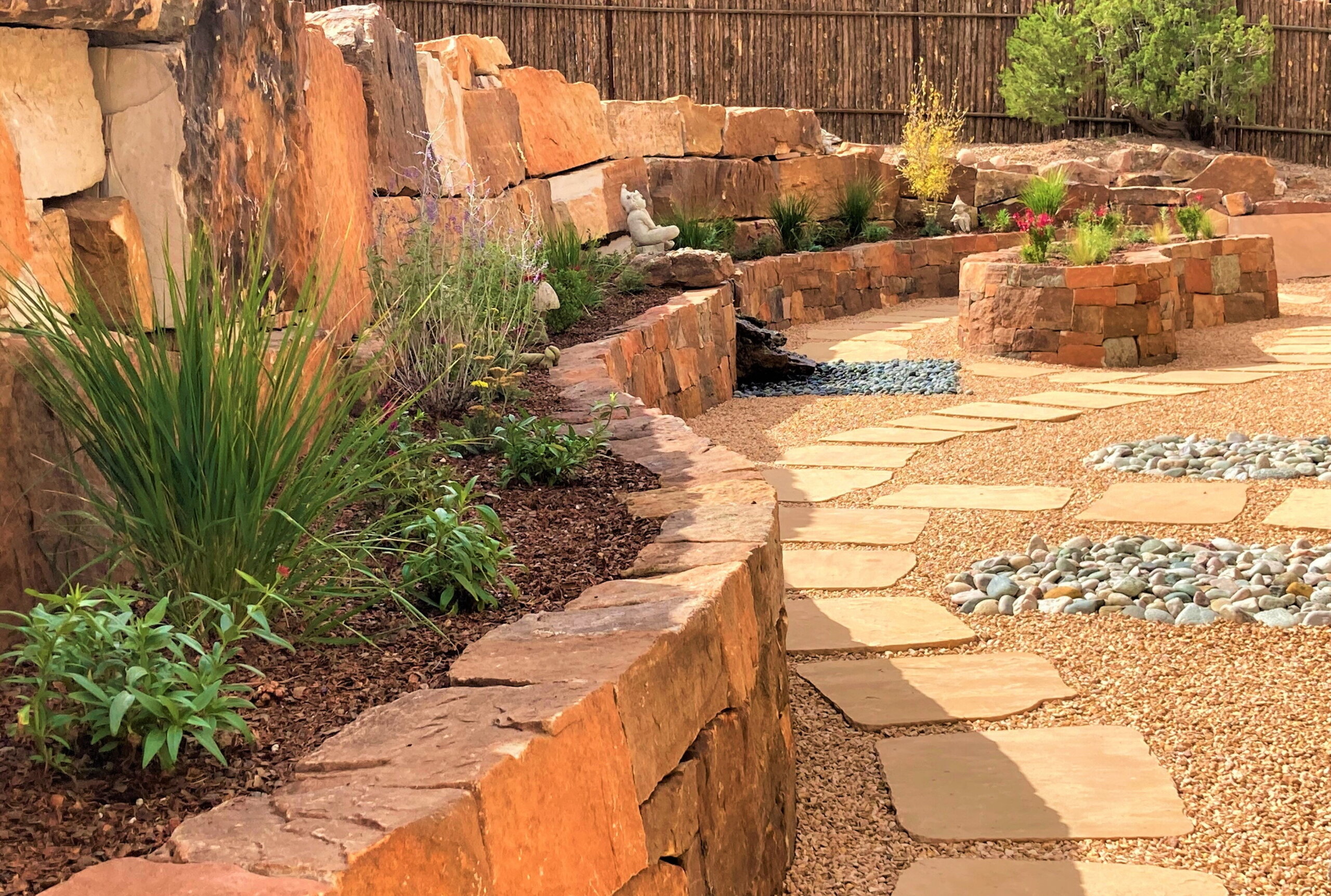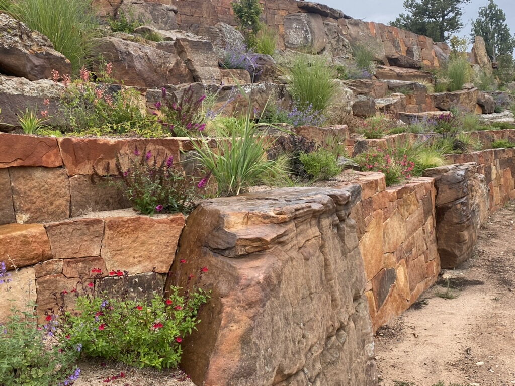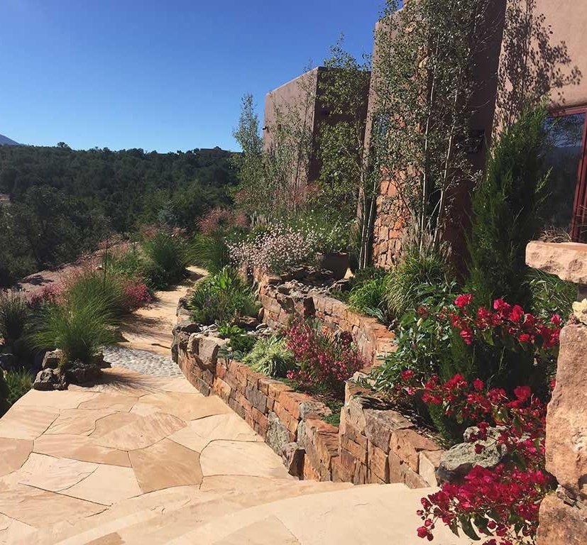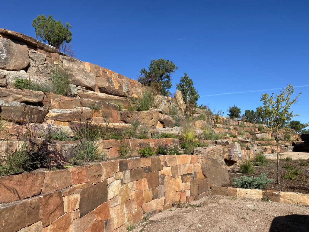 Terrace Gardens in Santa Fe | Rock Walls & Terraces | Masonry is a work of art, Stonework transforms a yard into something with year round interest. While most of the rocks may be covered with hanging vines and blooming shrubs in the summer, there is something refreshing to expose the simplicity of the rockwork after fall clean up, a timeless display of fine craftsmanship.